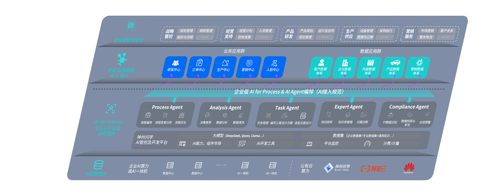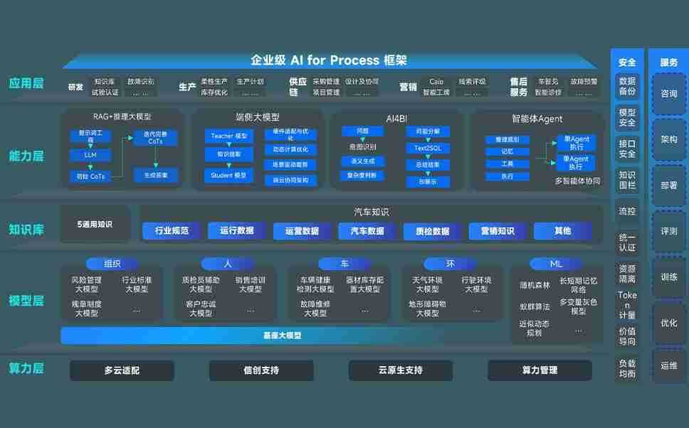 端到端的一站式AI工作空间深度融合了从企业战略规划到日常经营的全流程业务板块,,,定向解决车企内部领域多、、、部门多、、、链条长、、、、场景碎片化等难题,,,,支持车企快速构建以AI为核心的生产力写作体系,,,实现任务执行与AI能力的无缝集成与交互